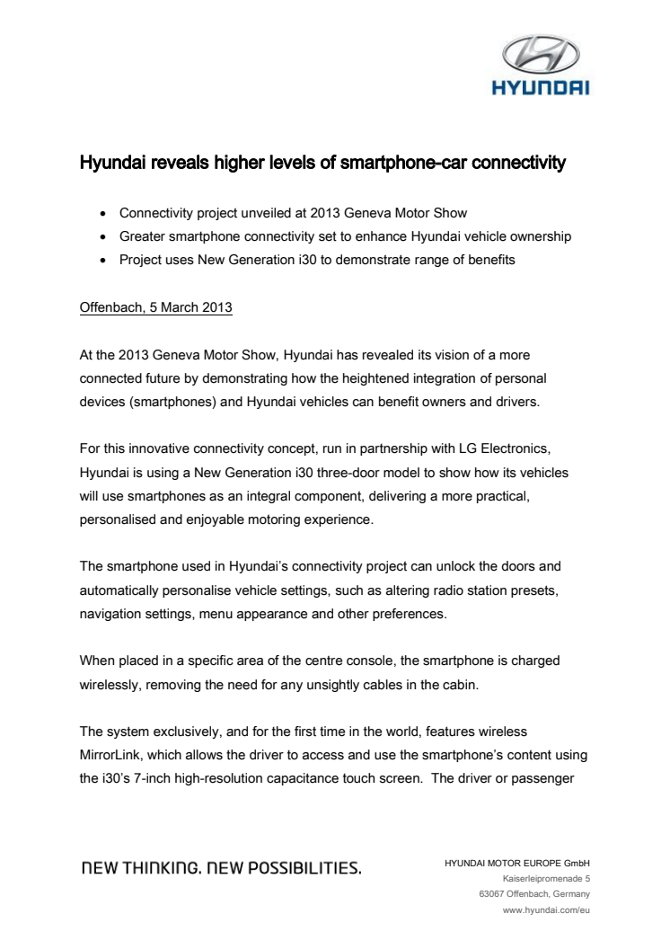 På bilmessen i Genève avslører Hyundai sin visjon for en mer tilkoblet framtid ved å demonstrere nytten av å integrere smarttelefonen med bilen.