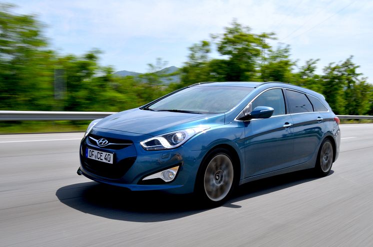 i40 blå i fart skrått forfra