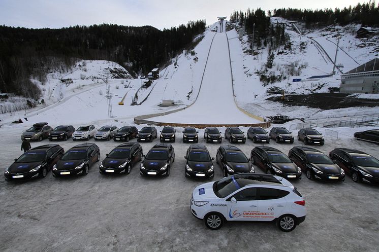 Totalt 24 biler fra Hyundai ble i dag overrakt organisasjonskomiteen for VM i Vikersund. Bilene vil bli brukt til representasjon og i det daglige arbeidet til organisasjonskomiteen. Bilene, 10 stk i40 og 14 stk ix35 med firehjulsdrift, er en del av et to-årig sponsorsamarbeide mellom Hyundai og det internasjonale skiforbundet (FIS) ifm VM i skiflygings og World Cup i hopp.