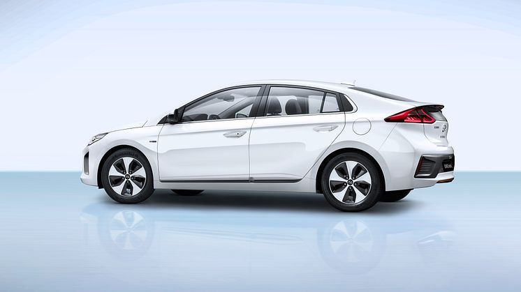 Billedtekst: Red Dots™ desingpris har blitt tildelt Hyundais nye IONIQ, el-bilen som kommer i tre forskjellige varianter med enten ren batteridrift, hybrid eller ladbar hybrid