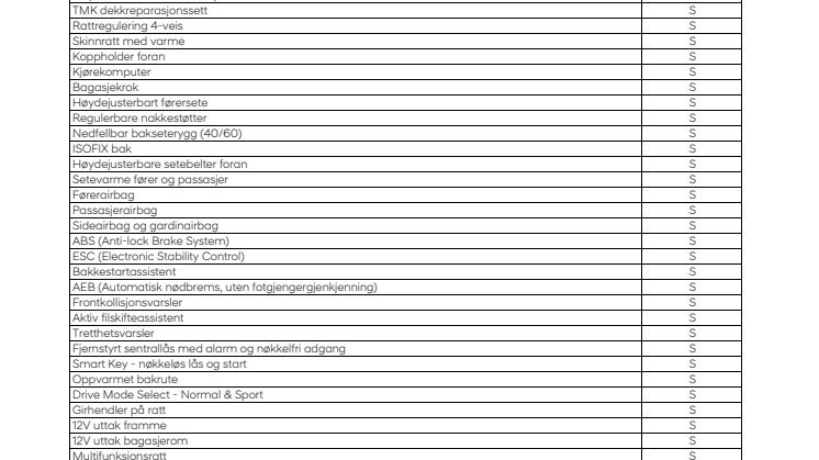 Se vedlegg for utstyrsliste i30 N og Fastback.